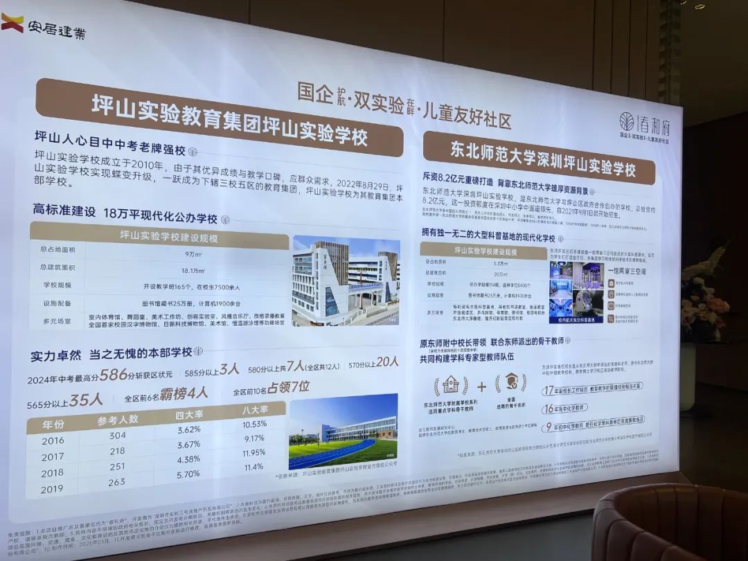 更重要的是,直线距离约4公里半径内,坪山实验教育集团与东北师大深圳坪山实验学校、六联小学组成了十分具有优势的优质教育矩阵。中房君了解到,其中的坪山实验中学,在2021年、2024年均出了最高分考生夺得区状元。